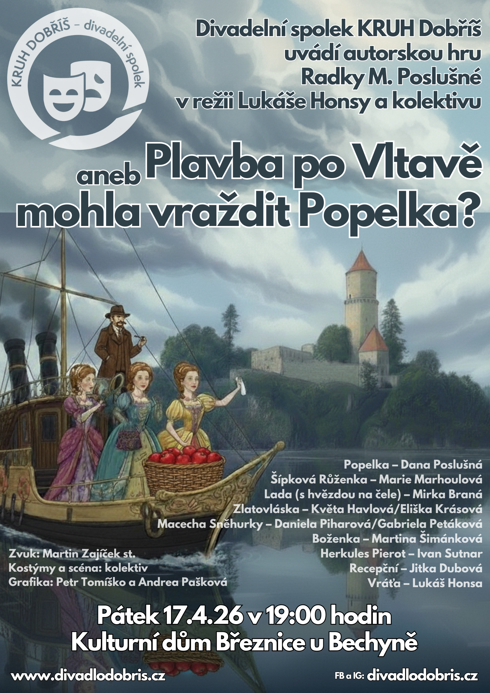 Dobříšský divadelní spolek KRUH přiveze do Březnice svou nejnovější autorskou inscenaci Plavba po Vltavě aneb mohla vraždit Popelka?